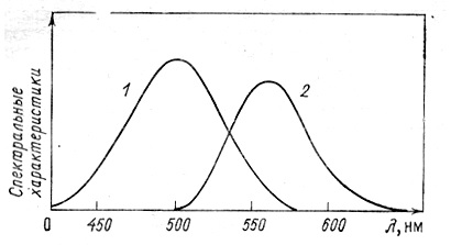 Сурет. 1.1. Бояғыштағы лазердің жұту спектірі(1) флуоресценциясінің(2) спектрі